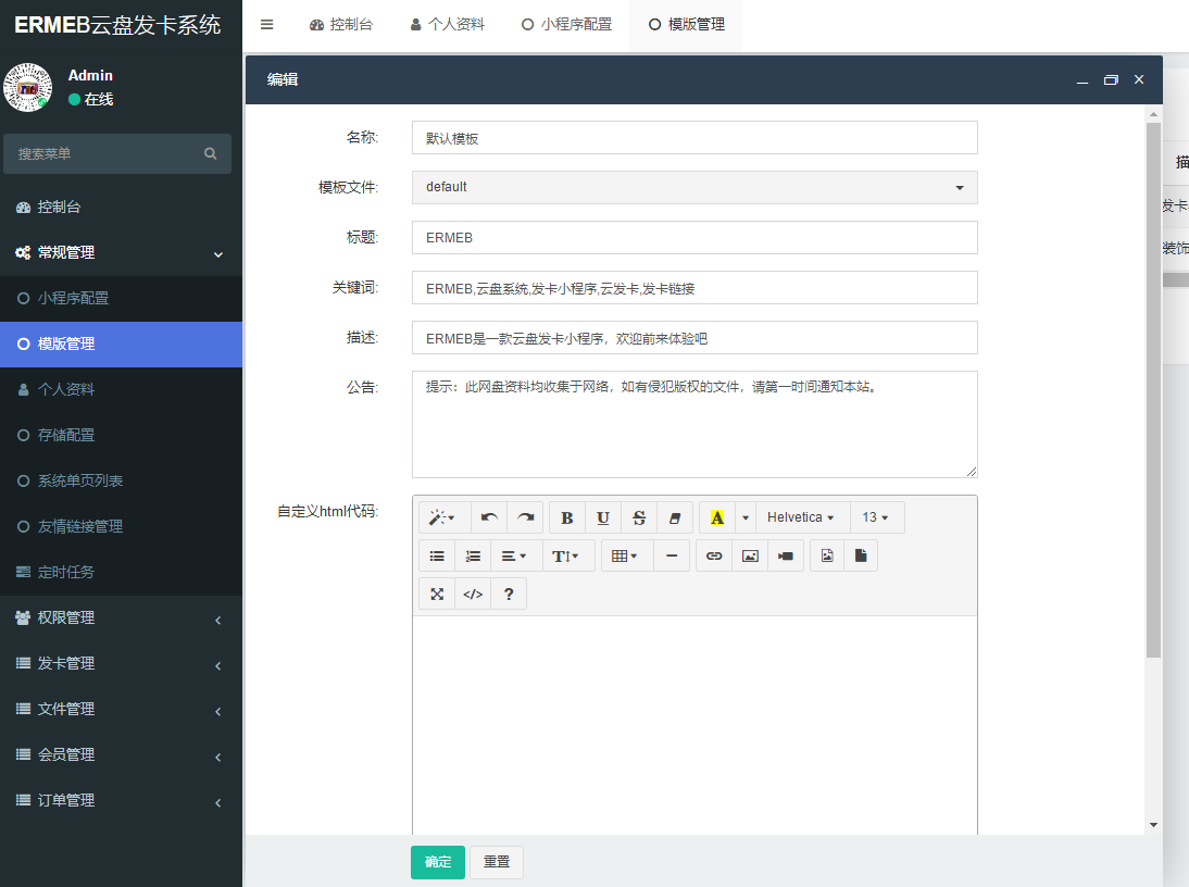 修改PC端标题关键词以及描述,进入后台---常规管理---模板管理  进行修改