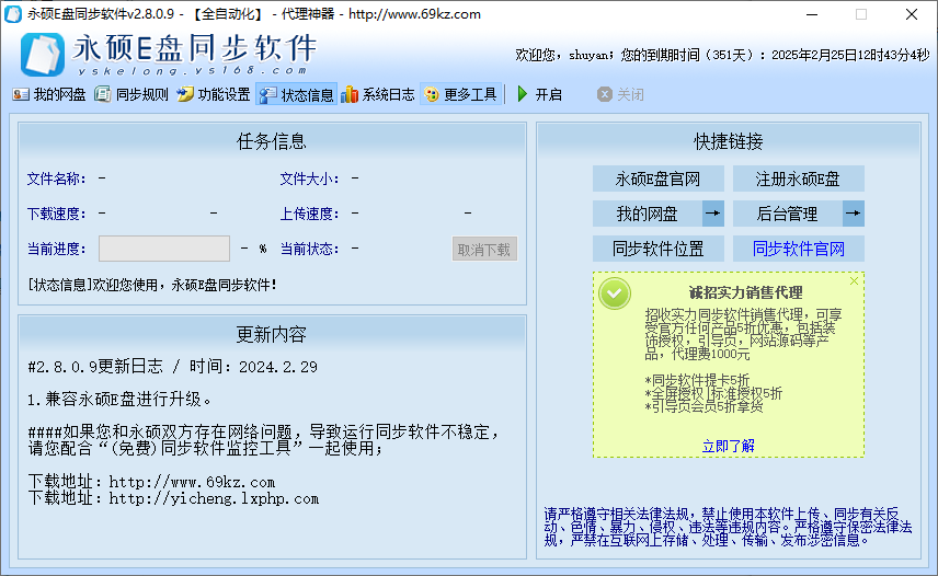 介绍:永硕E盘同步软件,是一款运用到网络的软件;您使用需要已经接入互联网;并且您的电脑能够正常访问永硕E盘相关网页。